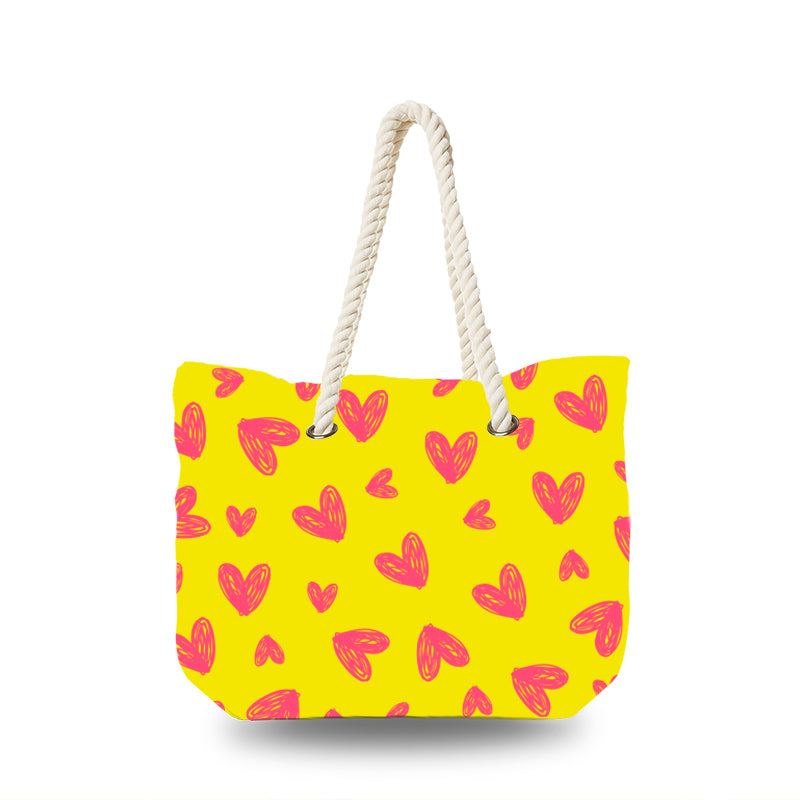 Canvas Bag - Hand Drawing Heart in Yellow Backgound