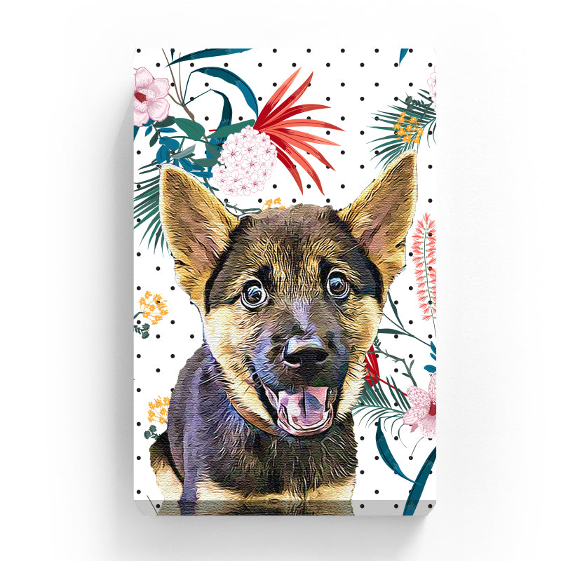 Pet Canvas - Blooming Florals on Black Dot Background